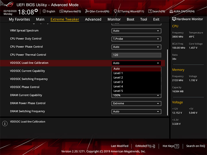 | VDDSOC Load-line Calibration | Auto/Level1…5 | 1 |