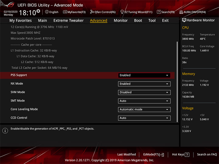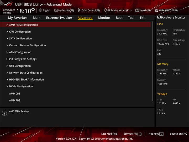 Пункты по наладке работы периферии, а также AMD CBS, PBS и Overclocking, находятся в рубрике Advanced.