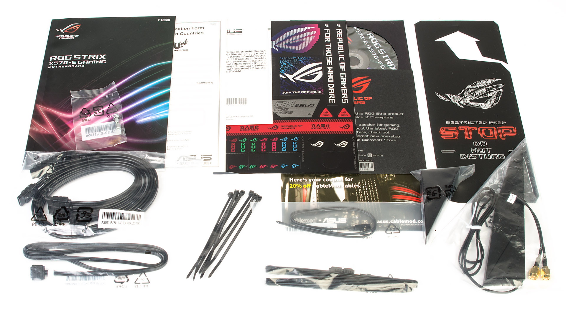Комплекты поставки фактически идентичны, здесь не достаёт лишь двух кабелей SATA с сетчатой оплёткой. Итого: