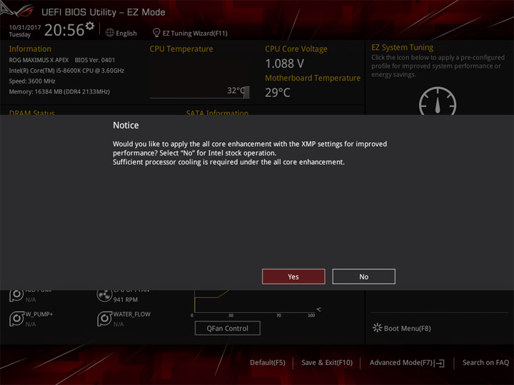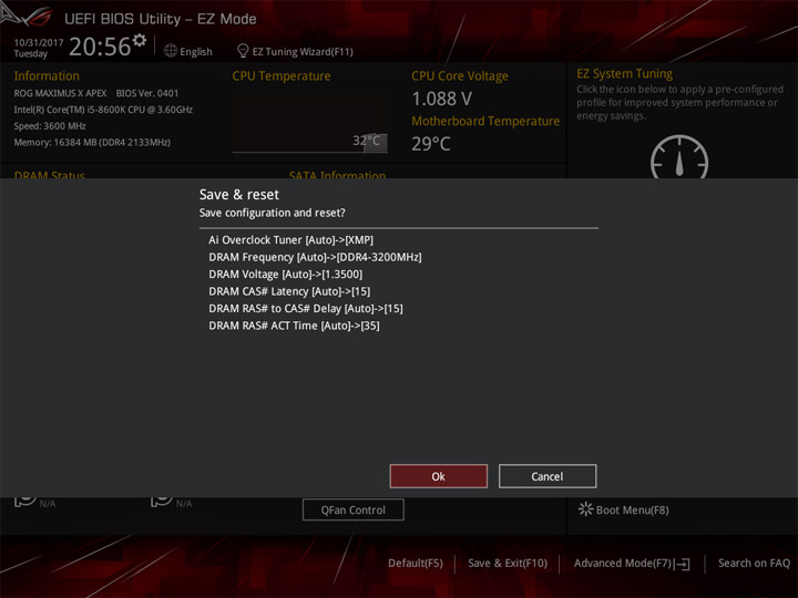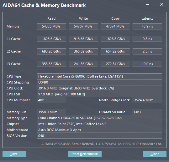 | ASUS ROG Maximus X Apex | 0401 | 5.92.4383 | 4.3.759-x64 | 2.4.3819 | 10.0.16299.19 |