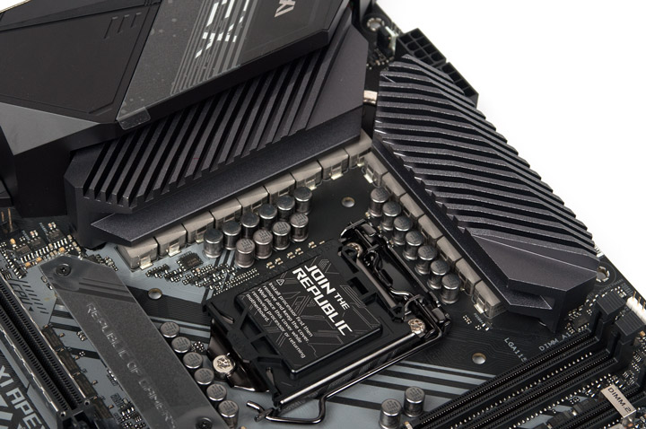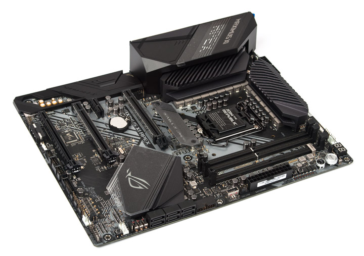 Отказались и от распайки скоростных проводных сетевых адаптеров, требующих дополнительные меры по их охлаждению. Поэтому весь радиатор отведён исключительно под силовые элементы стабилизатора питания процессора. Он достаточно приземистый, чтобы обеспечить улучшенную совместимость с охладителями ЦП.