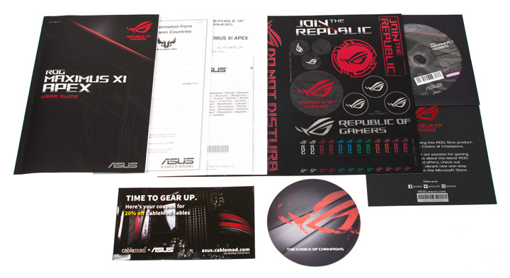 - комплект наклеек с различными изображениями серии ROG, в том числе и для кабелей;