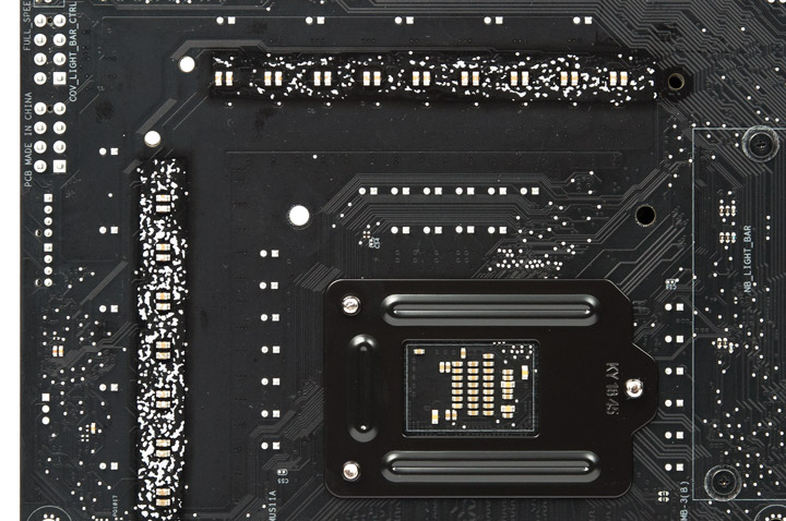 Но не только любители бенчмаркинга являются целевой аудиторией продукта. Добавлена подсветка в таких местах как: козырёк над задней панелью, область над основным гнедом PCI-E x16 и зона охладителя PCH.