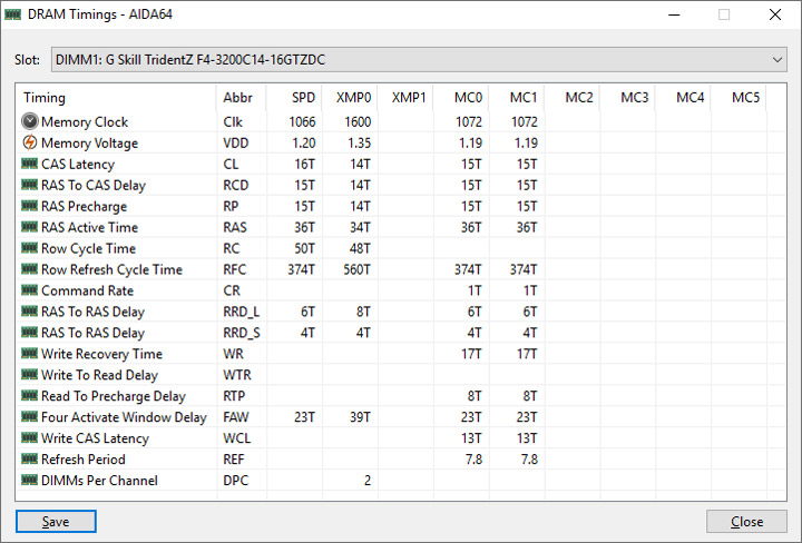 Платой новый набор из двух секций воспринимается как четыре (идентичных) планки. Для каждой есть свой набор профилей JEDEC + XMP.