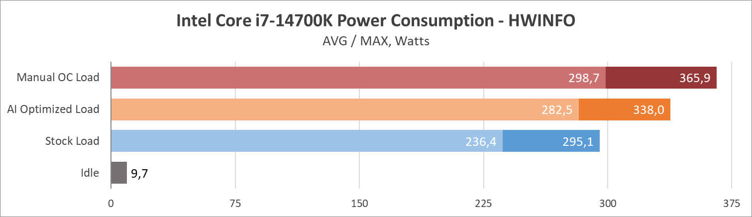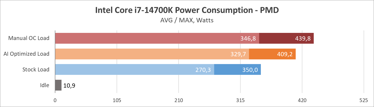 Температура в помещении удерживалась на уровне 20 градусов Цельсия. Измерение энергопотребления процессора происходило через прямой замер EPS12V с помощью ElmorLabs PMD (режим Averaging 119ms — 4096 samples). Измерение температуры фиксировалось по программным датчикам HWINFO, а также с термофото, выполненным тепловой камерой UNI-T RX-600. Тестом был забег LinX 0.7.0 (problem size 46290) в течение 30 минут. Каждый бенчмарк запускался пять раз, в результатах отмечено среднее арифметическое. То же касается игр, в которых происходила запись телеметрии (1% low fps + average fps) с помощью Riva Tuner Statistics Server, если не было предусмотрено собственного мониторинга в бенчмарках. Игры тестировались на заводских пресетах минимального качества в стандартных бенчмарках.