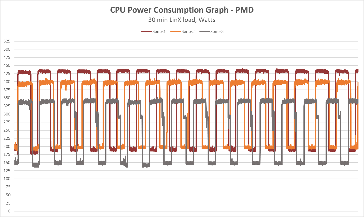 Учитывая отсутствие обдува вентиляторами — температуры находятся на отличном уровне и имеют большой запас. Теперь пора посмотреть на графики температур и энергопотребления.
