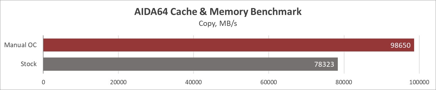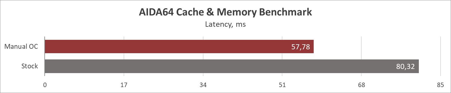 Тонкая настройка ОЗУ увеличила общие показатели в среднем на ~25% (пиковой показатель +28%) и снизила задержки также на 28%.
