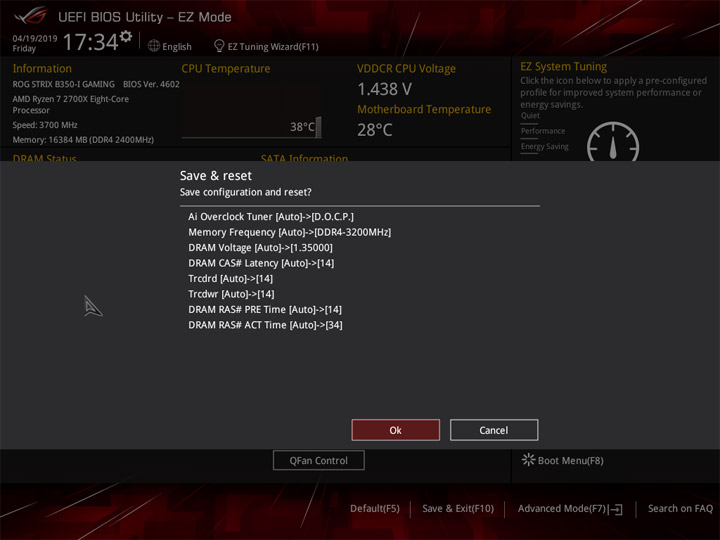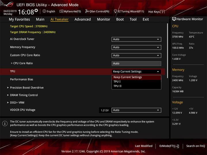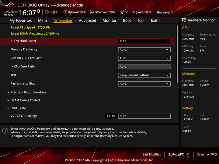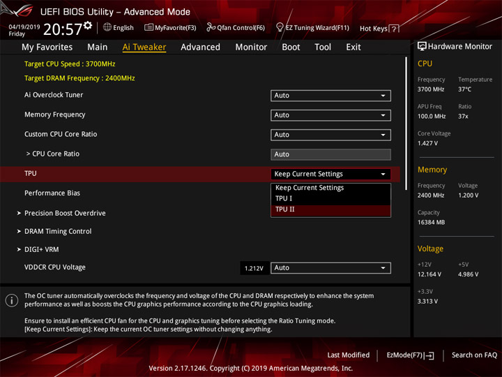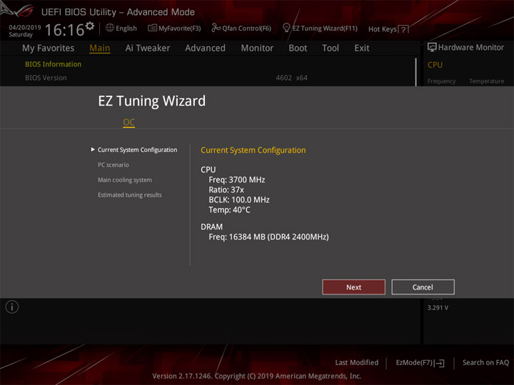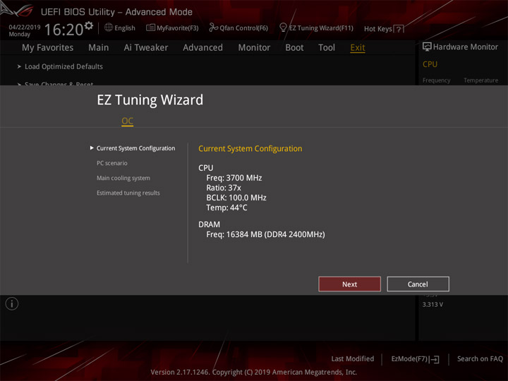 Опять же, по линии поведения, уже виденной на X470-Pro, последний фирменный разгонный сценарий не даст чего-то нового, а всё из-за невозможности смены базовой частоты. Поэтому предельный профиль, выбираемый в списке EZ Tuning Wizard, фактически совпадает с TPU I, а именно множитель процессора повысится до x40.