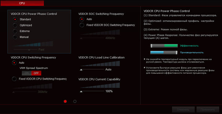 Для напряжений CPU и SOC предусмотрено два набора профилей LLC, их уровни корректировать можно двумя способами.