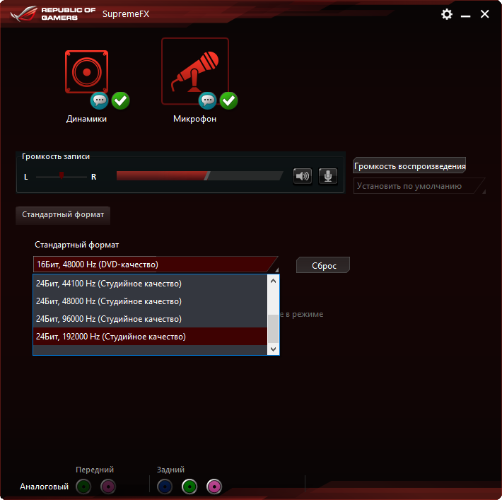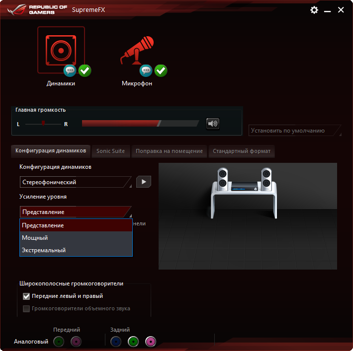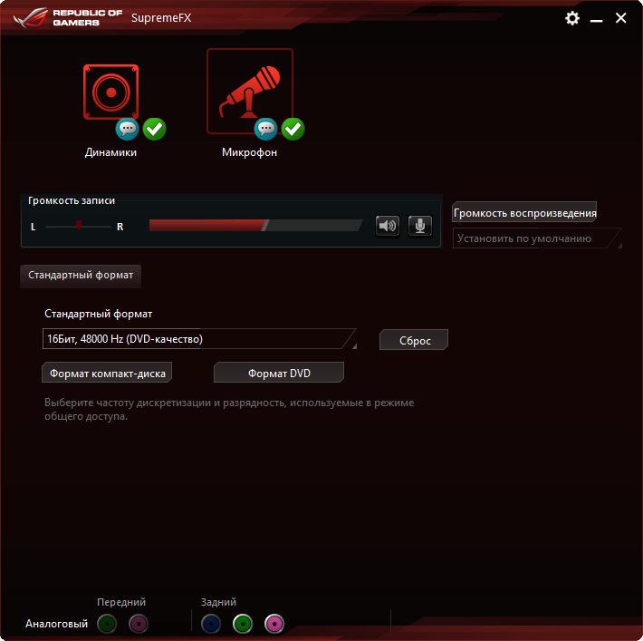 Внешний вид и возможности конфигуратора Realtek для наладки работы кодека уже нам знакомы, добавочная плата идентичная, потому тут удивляться нечему. В наличии две схемы оборудования при работе с гнездом сзади, на панели ввода-вывода. Для наушников заготовлено три профиля с предусилением выходного сигнала, с явным эффектом от их смены. Без добавочных схем, призванных приукрасить материал, характер звучания выполнен с акцентом на аналитичности. Весьма уверенно отрабатывается диапазон СЧ, нет лишнего «песка» в ВЧ, вот только реверберации обрывчатые, из-за чего страдает сцена, а в области НЧ есть лёгкий недостаток мощности, портящий атмосферность и погружение, который можно пытаться компенсировать увеличением громкости, используя три добавочных профиля. В целом, для платы с игровым уклоном положение вещей я склонен считать оправданным.