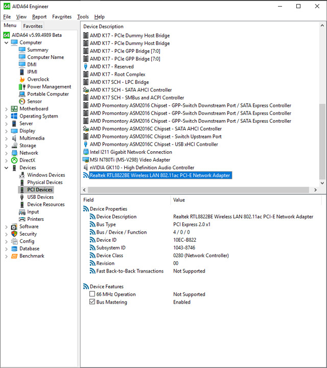 Детальные сведения об адаптере Realtek RTL8822BE находятся ниже.