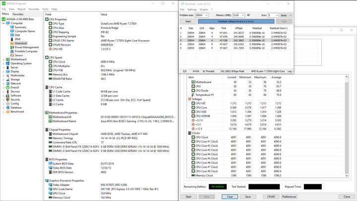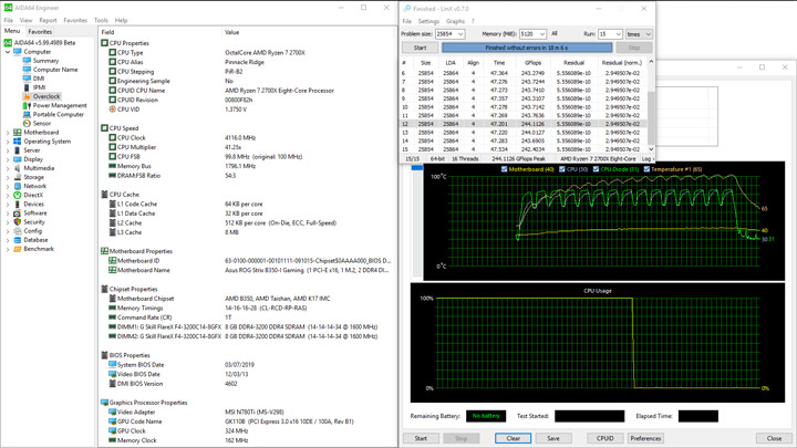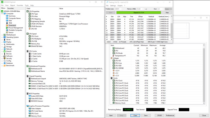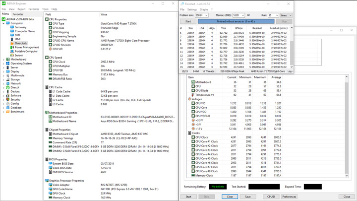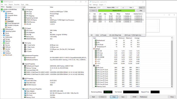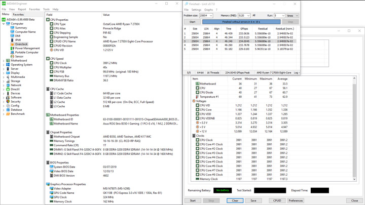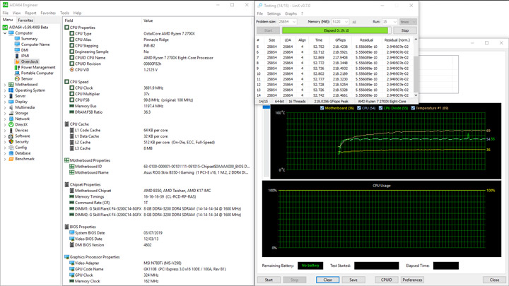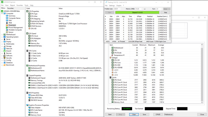«Ускорений» процессора больше не будет, поскольку частота останется фиксированной. В LinX продуктивность увеличилась, но даже экспресс-теста достаточно, чтобы выявить там нестабильное выполнение сценариев. Ещё один раз можно провести параллель с представителем серии Prime в лице X470-Pro — проблемы аналогичны.