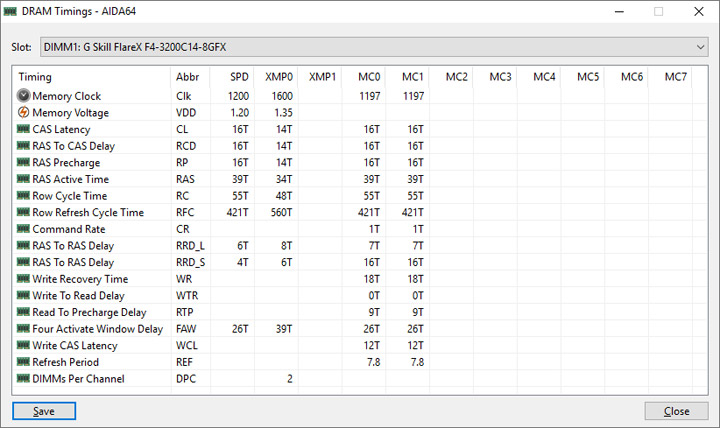 - память: G.Skill Flare X F4-3200C14D-16GFX (2x8 ГБ, 3200 МГц, 14-14-14-34-1T, 1,35 В);