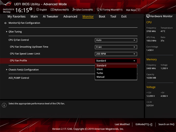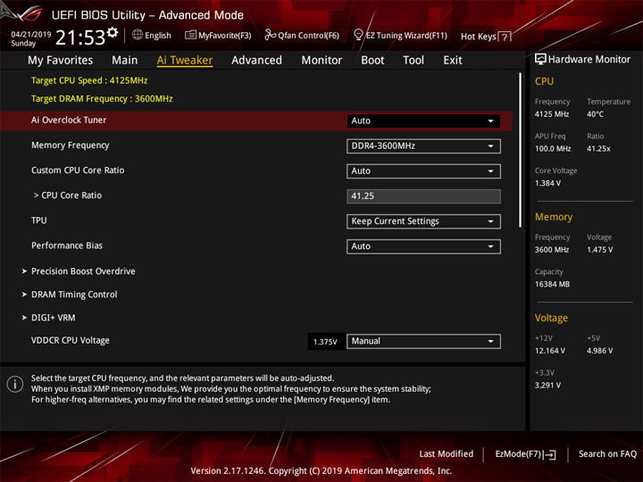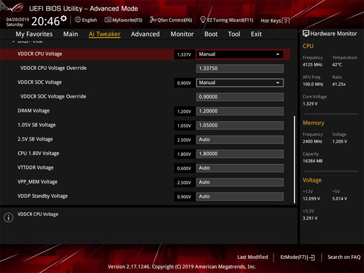 Есть второй профиль, с ним множитель процессора вырастет до x41. Тут уже заметен повышенный уровень действующего напряжения на процессоре (в сопоставлении с предыдущим вариантом работы), хотя явно зафиксированного значення в UEFI нет, поле остаётся с отметкой «Auto».