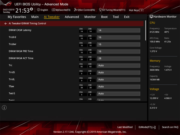 Ещё один яркий аспект сегодняшнего обзора — предельный разгон ОЗУ. Известно, большинство материнских плат обновлённых моделей, с хабами «четырёхсотой» серии, способны обеспечить комбинацию из 3533 МГц и основной схемы задержек 14-16-16-16-28-1T (для нашего тестового комплекта). Но особый статус испытуемой, я про исполнение в формате mini-ITX, подтвердил высокие ожидания — удалось зафиксировать стабильность при 3600 МГц. Быть может, и это не предел, но повышать больше напряжение на модулях я не стал, ограничившись достаточными для такой схемы 1,475 В. Последним в списке дифирамбов стал использованный в этом тестовом блоке множитель ЦП — x41.25! Впервые не пришлось жертвовать частотой процессора, чтобы разогнать ОЗУ до её предела. Лишь потребовалось подобрать достаточное для него напряжение, поскольку ускоренная DRAM значительно повышает нагрузку на всю систему и сам CPU. Не было никаких проблем с 1,375 В, заданных в UEFI.