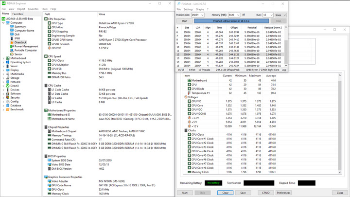 Как итог, лучшим, готовым сценарием по разгону здесь будет комбинация TPU II и D.O.C.P. В результате Ryzen 7 2700X ускорится до 4,1 ГГц, а тестовый комплект памяти заработает на частоте 3,2 ГГц (в соответствии с XMP).