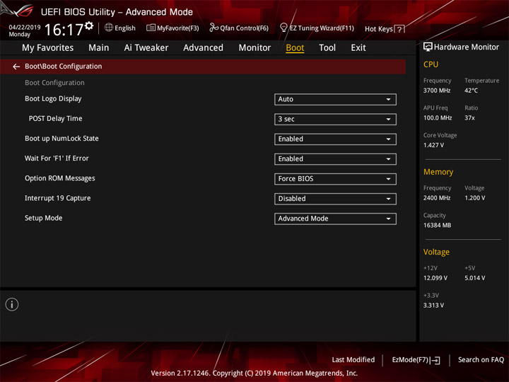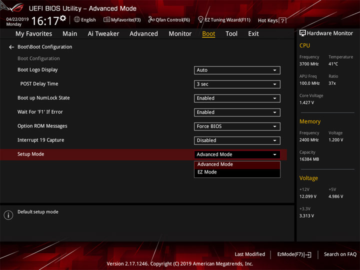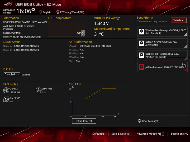 Ez Mode — упрощённый режим наладки, тут можно установить точное время, определиться с приоритетом загрузочных устройств, активировать XMP для DRAM.