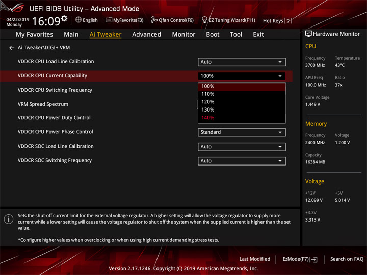 | VDDCR CPU Current Capability (%) | Auto/100…140 | 10 |