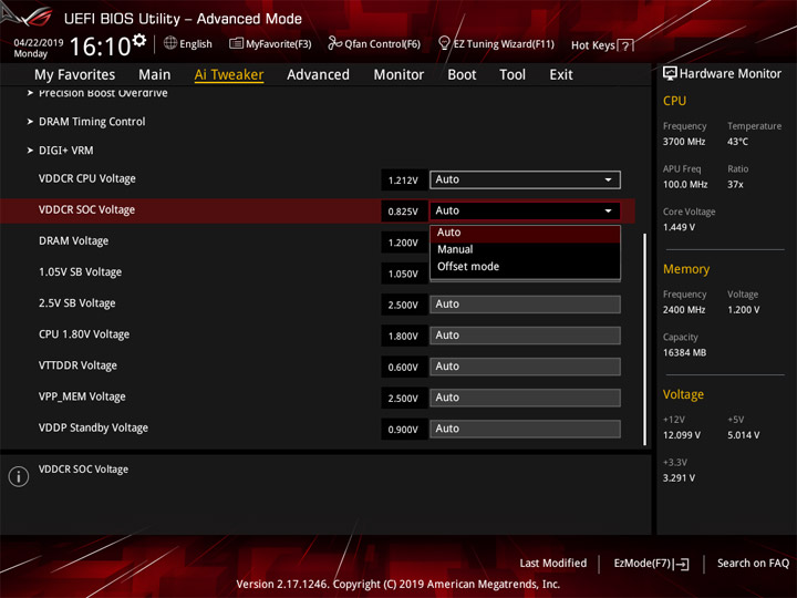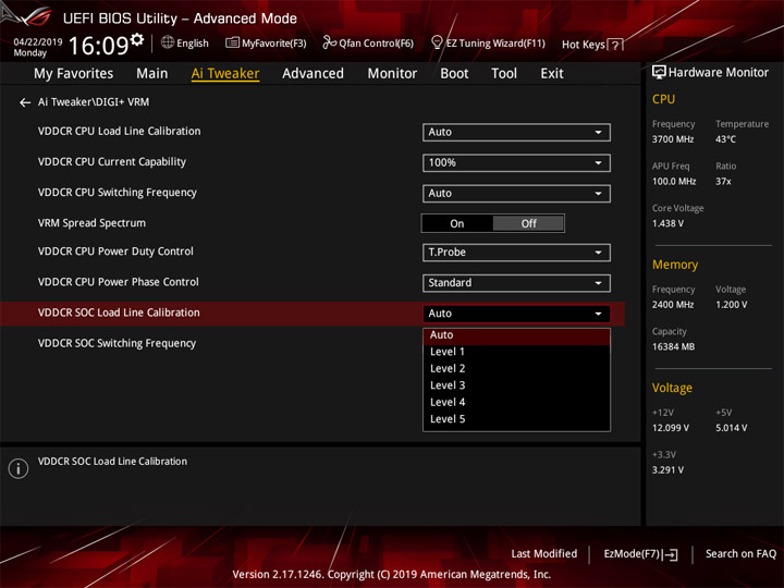 | VDDCR SOC Load Line Calibration | Auto/Level1…5 | 1 |