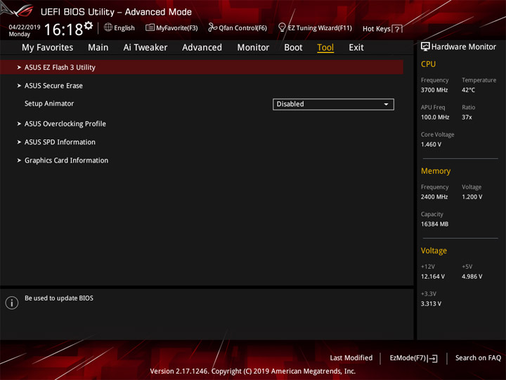 Ez Flash — инструмент для обновления прошивки, интегрированный в состав UEFI. Изучение особенностей пройдёт с версией 4602.
