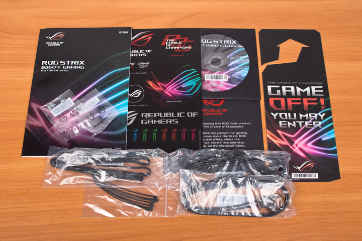 - комплекта наклеек с различными изображениями серии ROG Strix, в том числе и для кабелей;