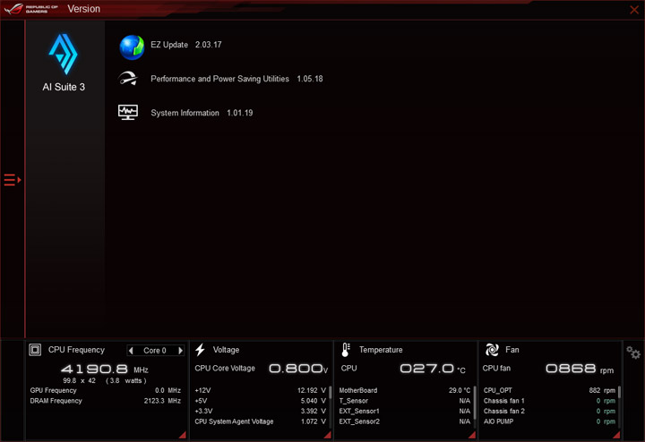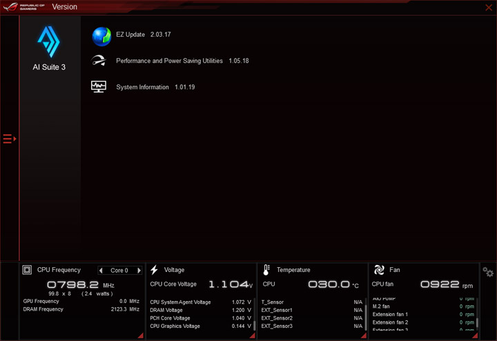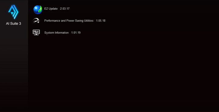Наибольшее число программ обычно включено в среду Ai Suite 3, но не в этот раз. Нет даже комплексного мастера по настройкам, ввиду этого именование управляющих программ приобрело вид Performance and Power Saving Utilities.
