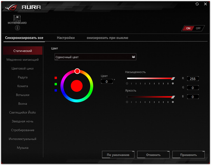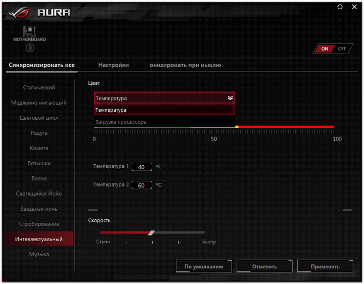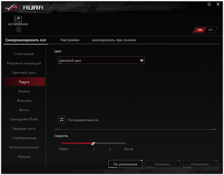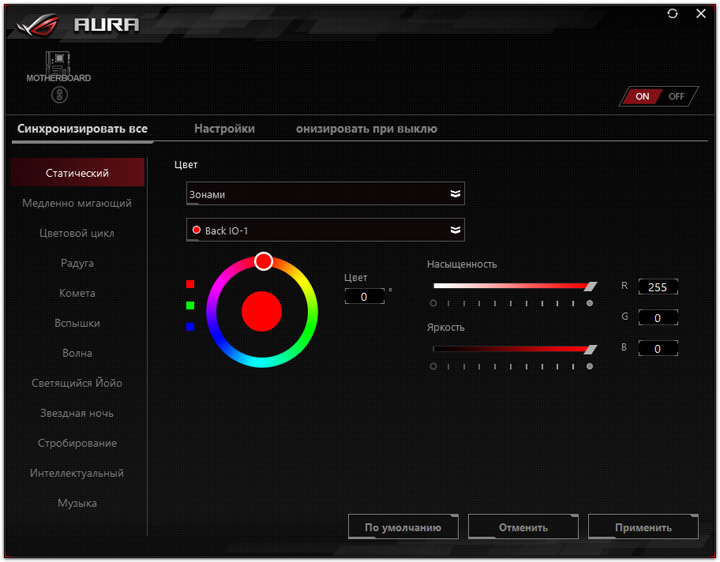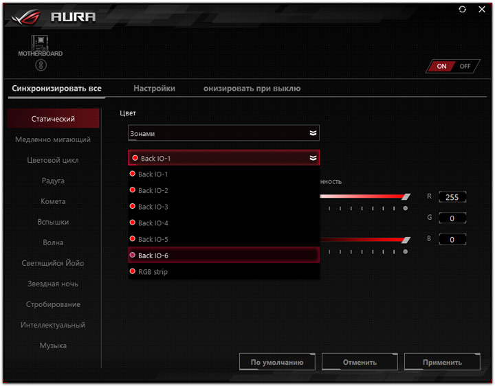 Подсветка на этой плате сконцентрирована в одном месте, но, как оказалось, набрана она пятью разными каналами. Каждый можно настроить отдельно, как и подключенную внешнюю светодиодную ленту.