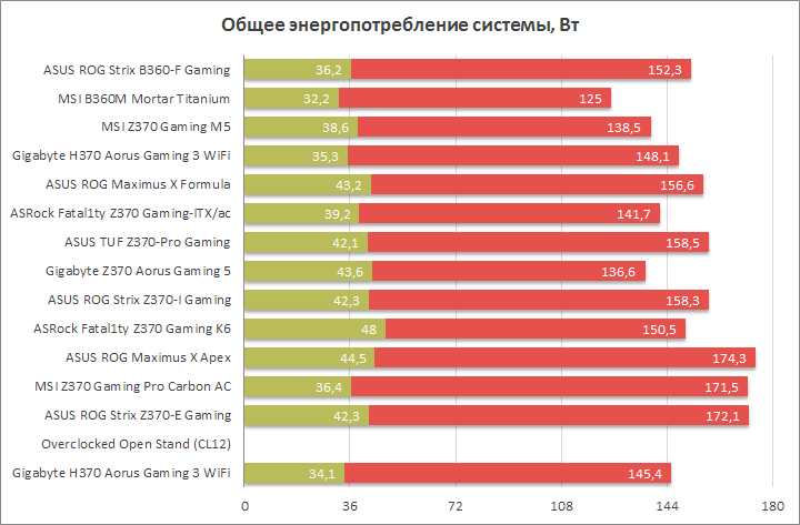 Глядя на предыдущую участницу наших тестов становится понятно, насколько сильным может стать эффект по итогу проведения оптимизаций со снижением процессорного напряжения. Но если всё же отталкиваться от базовых возможностей, то хвастать ROG Strix B360-F Gaming нечем, ведь оснащённая не меньшим числом светодиодов модель от Gigabyte показала меньше аппетиты, а там существенно завышались и CPU SA с IO.