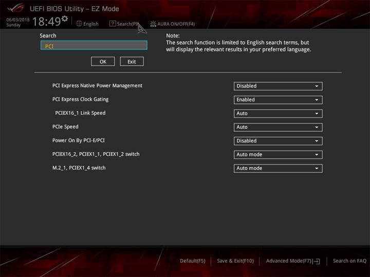 Для ускоренной навигации есть поиск. На первой странице расширенного меню можно сформировать набор из необходимых пунктов UEFI на свой вкус.