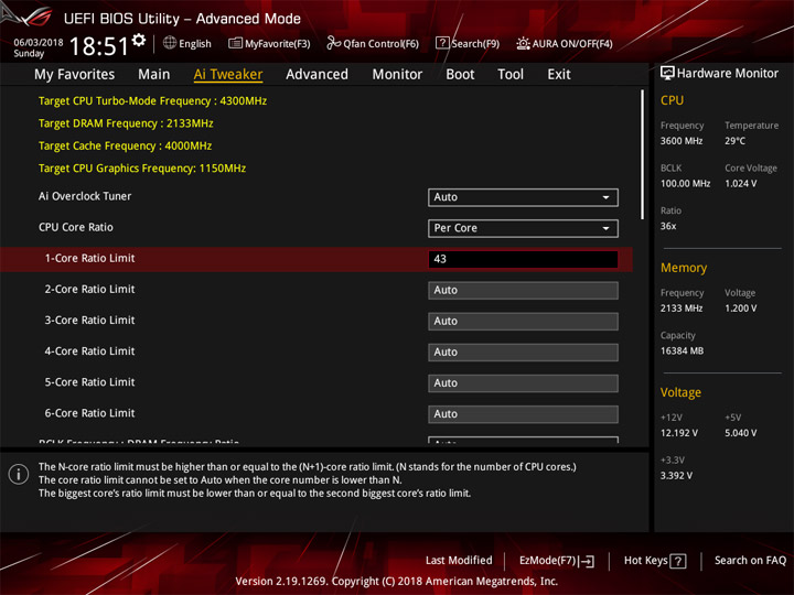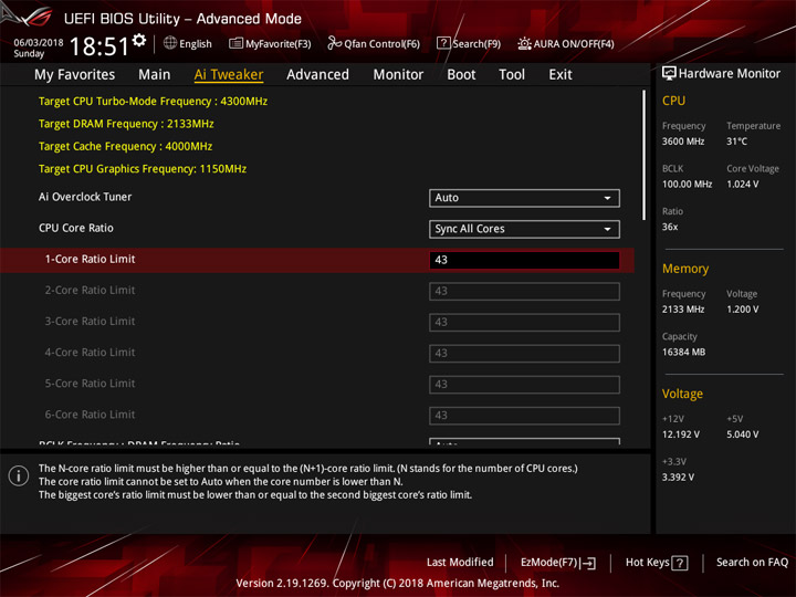 | CPU Core Ratio (Multiplier) | 8–43 | 1 |