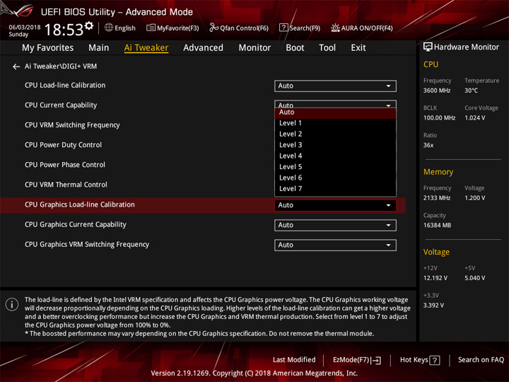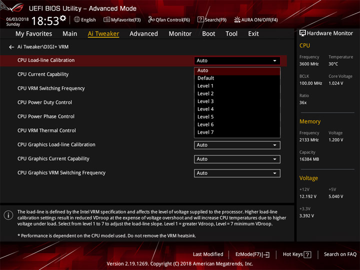 | CPU Load-line Calibration | Auto/Level1…7 | 1 |