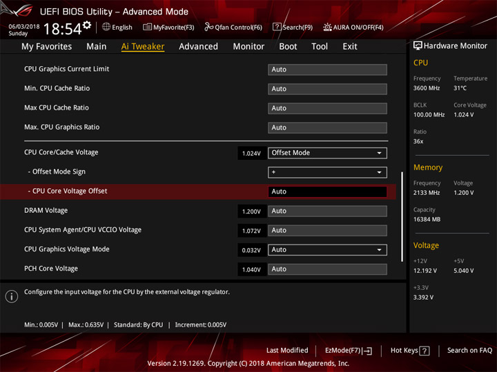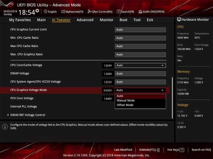 | CPU Graphics Voltage Override (В) | 0,6–1,7 | 0,005 |