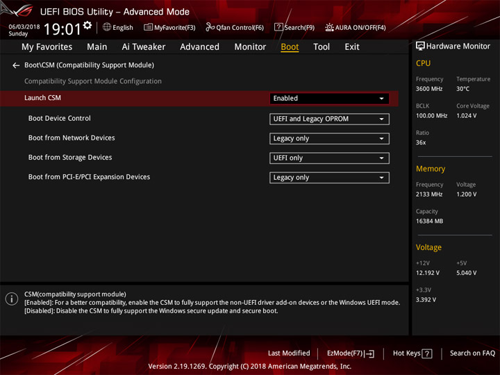 CSM изначально выключен, а Fast Boot активирован. Что-либо можно изменить согласно собственным предпочтениям.