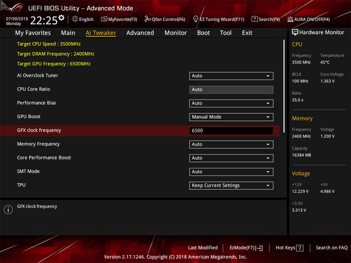| GFX core voltage (В) | 0,00625–1,55 | 0,00625 |