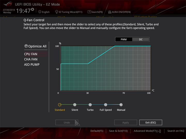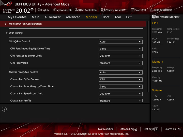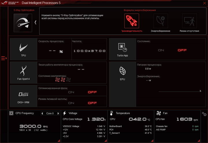 Наполнение традиционного AI Suite 3 достаточно скромное, но все базовые пункты тут есть. Они никак не расширят возможности по разгону, обходя каким-либо образом наполнение UEFI. Контроль за напряжением DRAM отсутствует. Управление вентиляторами будет происходить при участии самого последнего Fan Xpert (4).