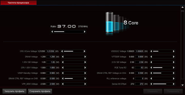 | CPU Voltage Offset (В) | (+/–) 0,00625–0,5 | 0,00625 |