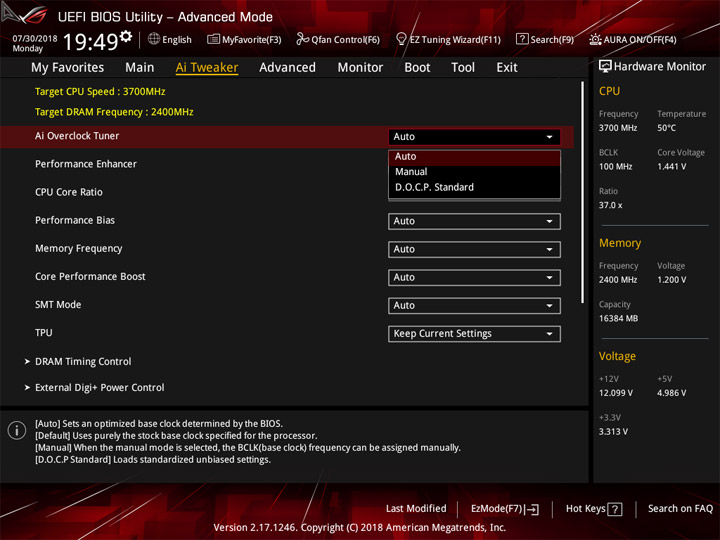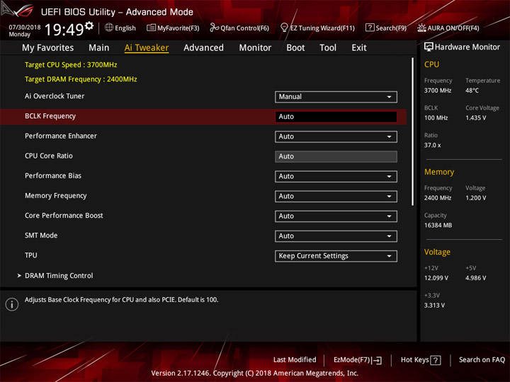 Раздел для оверклокинга — Ai Tweaker. Несмотря на использование «младшего» хаба, здесь есть пункт по указанию BCLK.