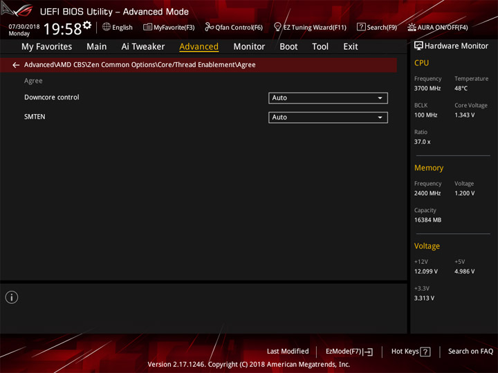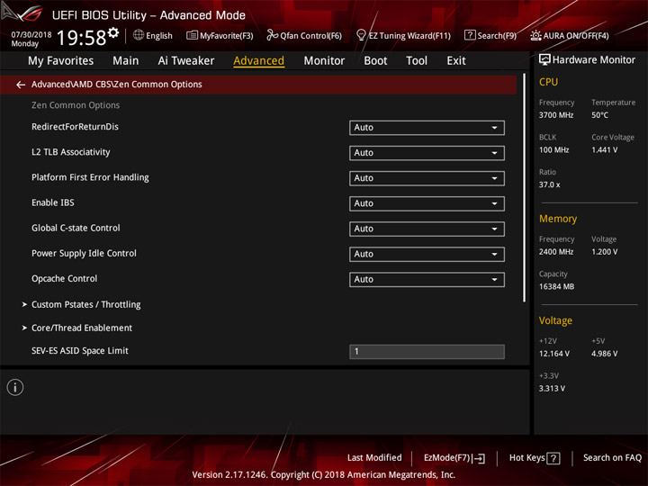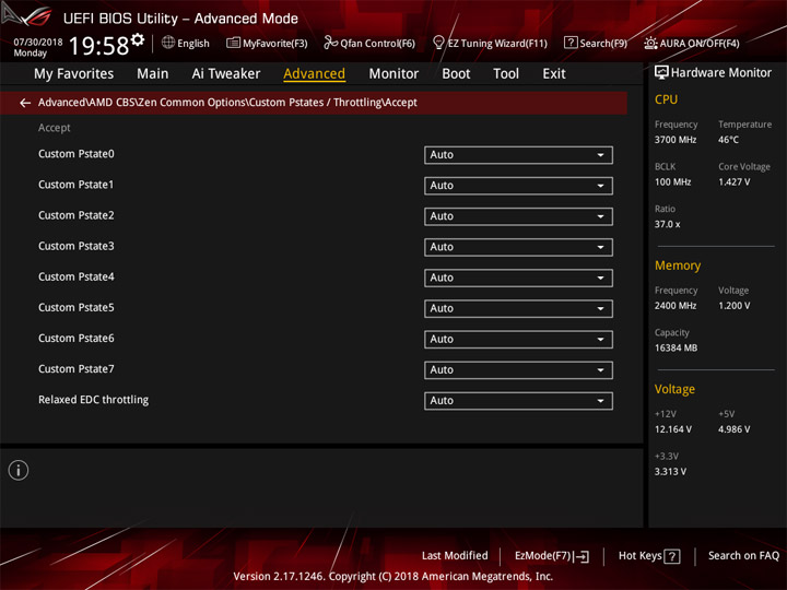 Страница Advanced поможет в настройке разных узлов системы. Обозначу присутствие рубрики AMD CMS, где, помимо прочего, можно найти пункты по управлению Pstates.