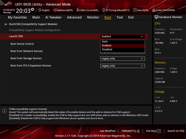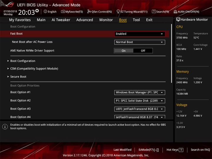 Fast Boot изначально активирован. Ускорить запуск системы можно путём деактивации CSM.