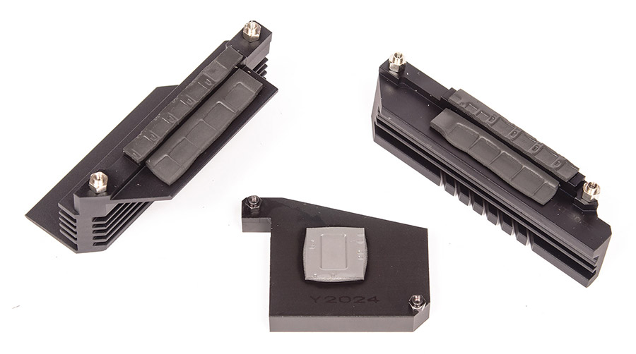 Замечания есть как к площади термопрокладок, так и к самим теплосъёмникам, поверхности явно маловато для полноценного контакта с транзисторами, однако ситуация бывает намного страшнее, потому тут ещё всё выполнено относительно неплохо. Удивительно мало светлой прокладки достанется будущему SSD (и та уже подтекла).