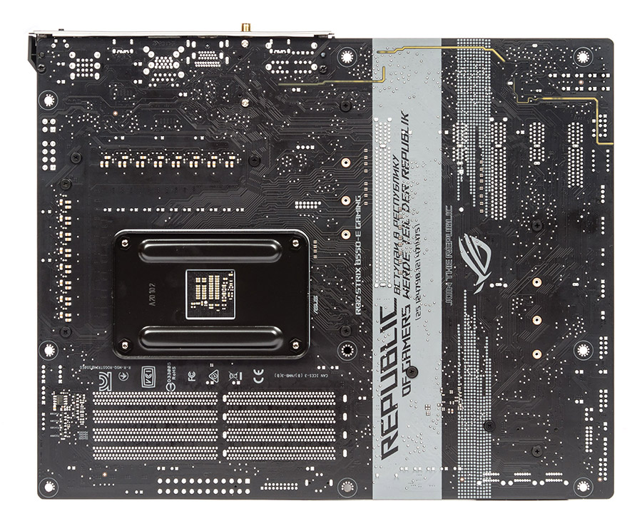 Заглушка задней панели украшена наклейкой чёрного цвета, но сам металл до сих пор не анодирован или даже не окрашен в чёрный оттенок, в отличии от видеокарт, где подобный подход уже освоили. Это создаст повод для печали всем перфекционистам, положившим глаз на продукт высокого класса.