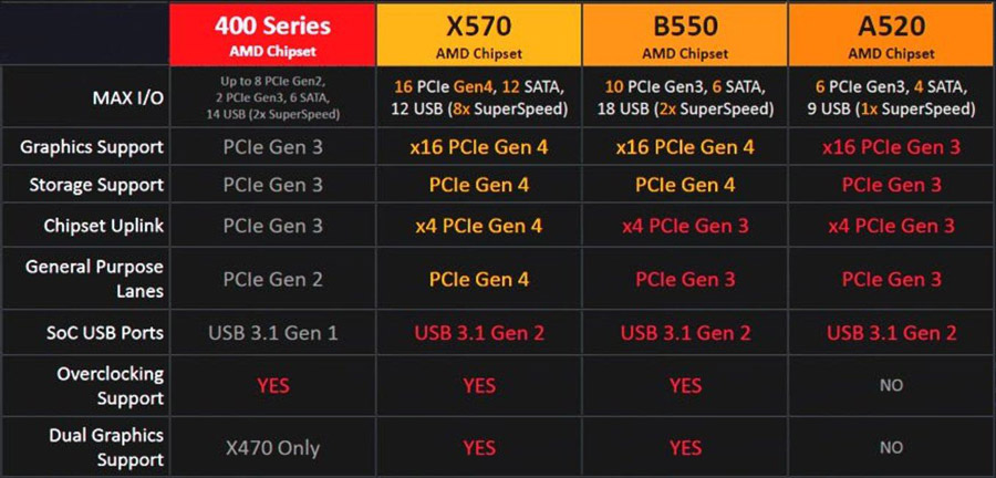 Приближалась зима, слухи о доступности продуктов и готовности к отгрузкам крепли, но официально сроки были озвучены лишь в ходе выставки CES 2020 — начало лета 2020 года. Список возможностей B550 появился чуть раньше, их вынесение на публику приурочили к выпуску недорогих четырёхъядерных CPU Ryzen 3 (Zen 2). В многоликом hardware-сообществе они вызвали нешуточные волнения. В качестве основных «фишек» предложили способность к организации SLI (в чём сам хаб фактического участия не принимает) и готовность к принятию на борт будущих процессоров AMD Vermeer (Zen 3). Все линии PCI-E, ведущие к хабу и идущие от него, числятся как третьего поколения (нет, не четвёртого). Но куда больше энтузиастов возмутила ситуация с отсечением «четырёхсотых» хабов от дальнейшего развития платформы AM4. К подобному негодованию в AMD вряд ли были готовы, но довольно быстро они всё же успокоили публику в очередном заявлении, буквально лишив ещё даже не добравшуюся до полок магазинов группу плат одной из «киллерфич». По факту, мы имеем дело с преемником не B450, а X470, оценивая позиционирование в вопросе деления 16 процессорных (!) линий PCI-E 4.0 между парой слотов (x8+x8). Мечтатели заполучить легальную возможность работы с процессорными (!) линиями последнего поколения (4.0) для нужд единственной видеокарты и одного накопителя NVMe могут не ждать будущей осени и релиза хаба A520, поскольку новаций в отношении уже имеющихся у хабов серии 400 при работе с ЦП не предполагается, то есть поддержка будет лишь ревизии PCI-E 3.0. А другим, ожидающим условный аналог чипа AMD X570 от ASMedia «без вентилятора», то есть хаба, обладающего поддержкой линий четвёртого поколения PCI-E, в очередной раз придётся ждать, по всей видимости, релиза продуктов шестисотой серии. Вероятно, её придержат к выходу CPU Vermeer, для которых всё ещё не известна дата даже «бумажной» презентации. Вряд ли мы увидим новинки до зимы, а значит, как минимум на полгода вперёд свежий хаб B550 будет «королём танцпола».