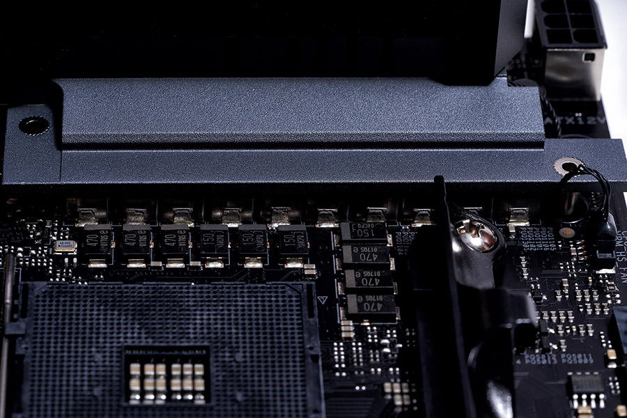 Силовые элементы достойны уважения, ASUS ROG Strix B550-I Gaming содержит на своем борту 50 амперные Vishay VRPower DrMOS SiC639, так что, за разгон и стабильность системы беспокоиться не стоит. Для питания SOC используется все те же SiC639. Можно отметить, что это несколько с запасом и не характерно для бюджетного решения. Но в любом случае мы имеем серьезный запас на будущее.