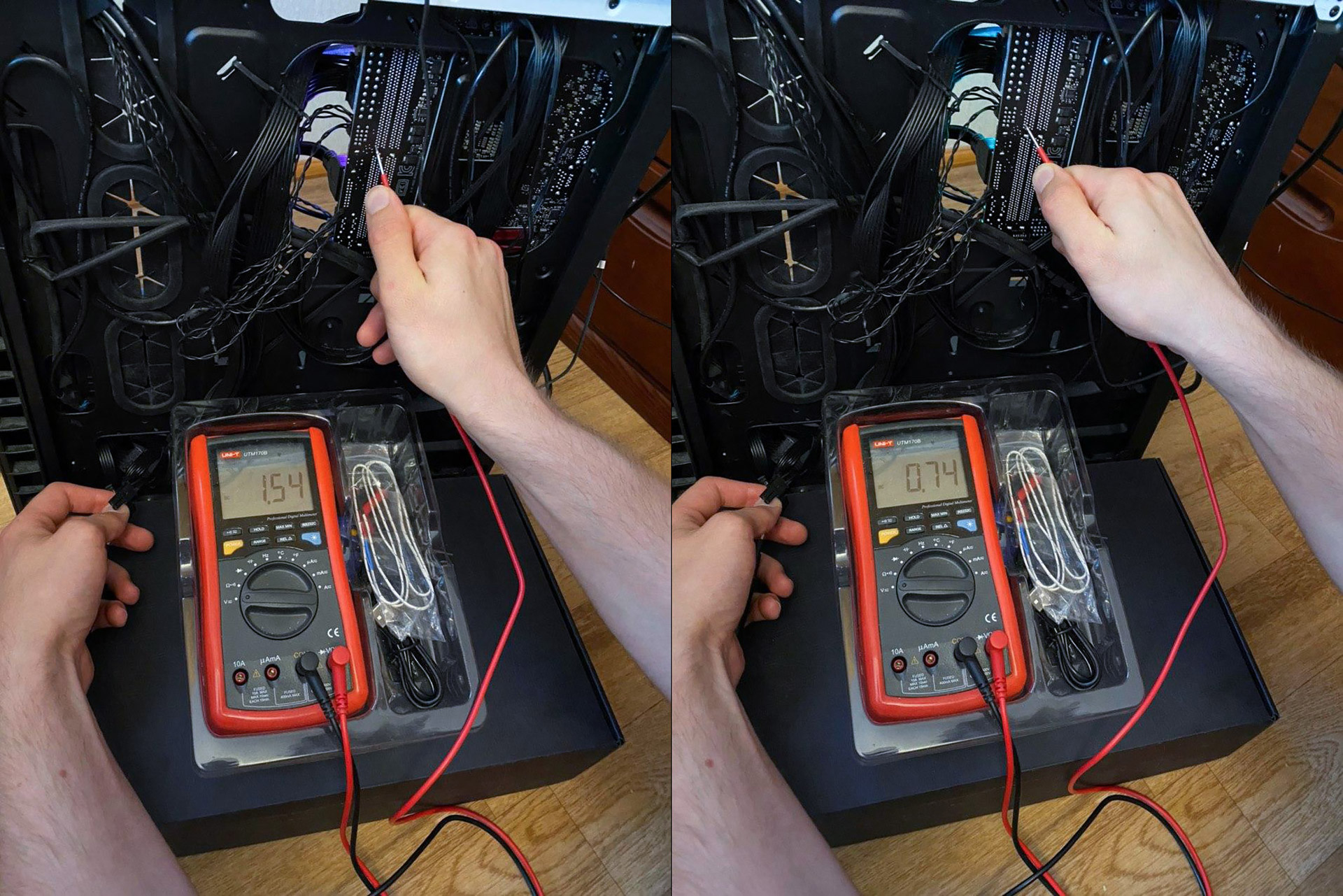 Точность выставления напряжения для DRAM немного хромает, если выставить в UEFI 1,5 В, то на цифровом мультиметре во время нагрузки можно увидеть 1,53–1,54 вольта.