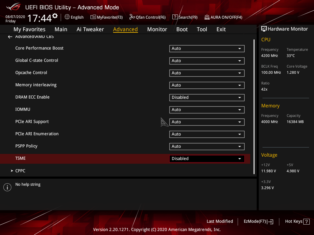 Secure Memory Encryption (SME) — это расширение набора инструкций x86, представленное компанией AMD для поддержки шифрования страниц в гранулярной памяти с помощью одного эфемерного ключа. Подмножество SME, Transparent SME (TSME), представляет собой более ограниченную форму SME, используемую для прозрачного шифрования всей физической памяти. Secure Encrypted Virtualization (SEV) расширяет SME до AMD-V, позволяя отдельным виртуальным машинам запускать SME с помощью собственных защищенных ключей. Это первая функция, которую стоит обычному ПК пользователю отключить, так как она существенно влияет на латентность и пропускную способность памяти. Находится этот пункт зачастую в меню AMD CBS.
