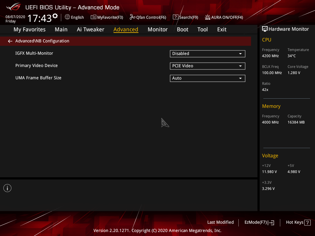 Последний важный пункт меню, о котором я хотел бы рассказать, это NB Configuration. IGFX Multi-Monitor позволяет переключаться между интегрированным видеоядром и дискретной видеокартой. В частности, есть возможность оставить активными оба устройства. Если вы забыли настроить этот пункт — не важно, плата сама выберет режим в зависимости от того, куда будет подключен DP или HDMI.