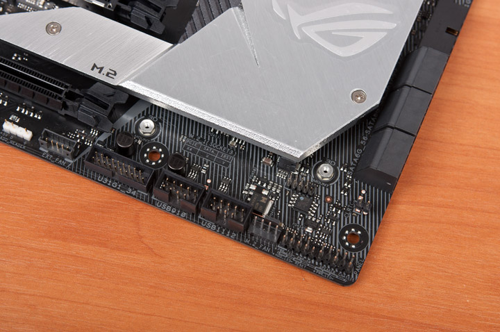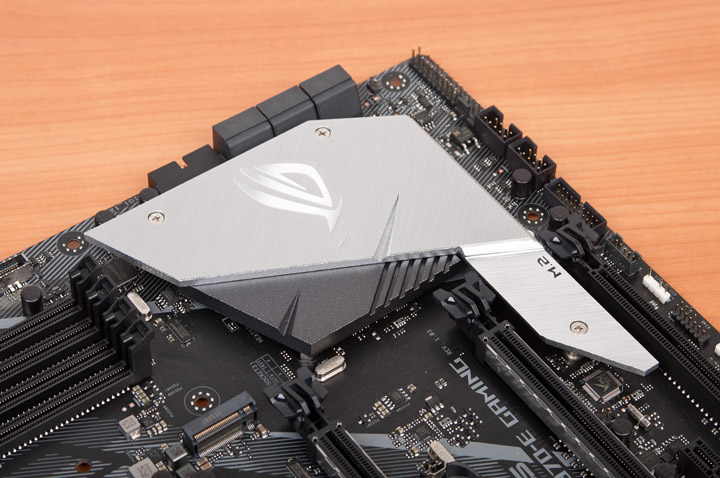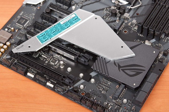 Верхняя часть выполняет роль радиатора под изделия формата M.2. Присутствует термолипучка.