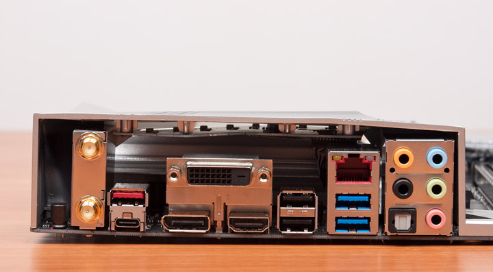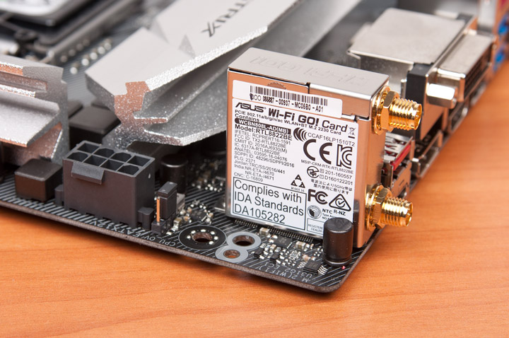 Достаточно спорно, на мой взгляд, организовано наполнение задней панели. Есть всего шесть выходов USB, и это при полном отсутствии PS/2. Один из них симметричный. А вот жаловаться на сетевую инфраструктуру будет неправильно, ведь есть и проводной, и беспроводной адаптеры. К слову, я впервые встречаю у продуктов ASUS беспроводное решение производства Realtek, прежде платы комплектовались (все как одна) модулем от Qualcomm. Заготовили здесь и три цифровых видеовыхода.