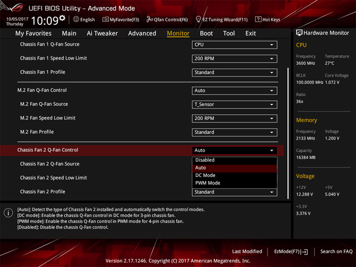 Имеется пять отдельных пунктов для формирования сценариев работы охладителей. В каждом случае есть выбор между изменением скважности ШИМ или понижением питающего напряжения. У корпусных устройств в роли опорной температуры может выступить любое получаемое платой значение (или даже их группа).