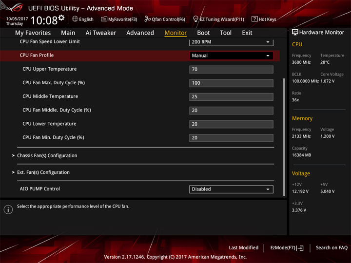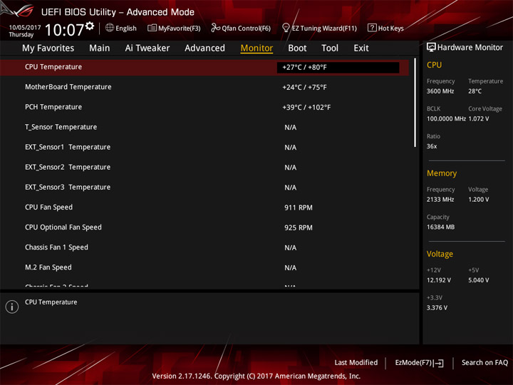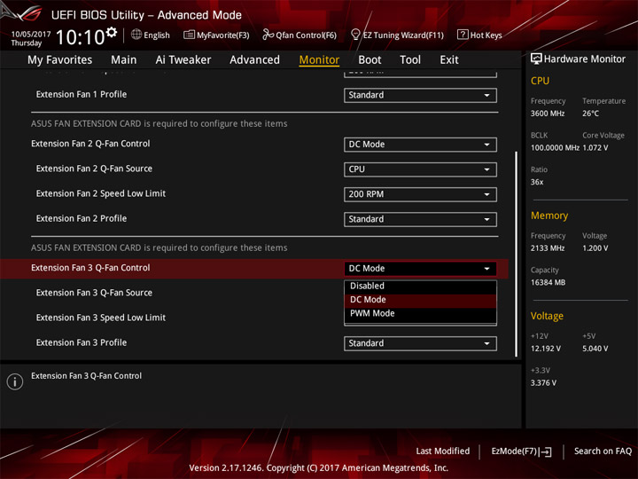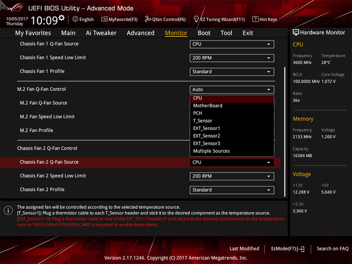 Микросхема UEFI всего одна и она впаяна. Из интересных дополнений можно отметить возможность использования внешнего термодатчика (он есть в комплекте). Его показания пригодятся для наладки схемы охлаждения. Для расширения числа подконтрольных вентиляторов предусмотрено пятиконтактное гнездо под фирменную плату на три дополнительных посадочных места, но её уже придётся докупить самому.
